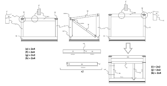 However our sick dog kennels are specifically designed to allow dogs wearing a post-operation collar to still access them with their collar / cone on their heads. An extract from our 'how to make a sick-dog kennel' guide is shown here. These kennels have a completely different design and are obviously less insulated than normal since the entrance way has to be larger.