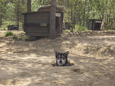 In the summer, we have to keep a close eye on the dogs to see that they are not being troubled too much by the mosquitoes since the pups from that year, in particular, will have little resistance and will be bitten a lot around the eyes, ears and genitals. Although we have put drains into the ground underneath the cages to reduce the amount of water that can gather there and this helps greatly in reducing the number of mosquito attacks, this is always a difficult time of year.