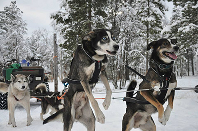 The teams generally consist of 4 to 6 dogs for solo sleighs and 8 to 12 dogs for paired or family sleighs, depending on the safari, the conditions, the experience and strength of the musher and the overall weight in the sleigh.